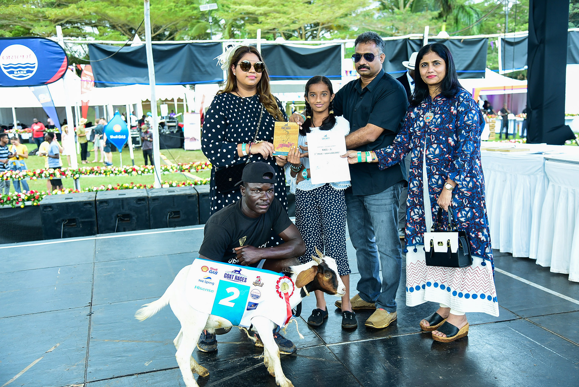 • On stage to give away race winner prizes